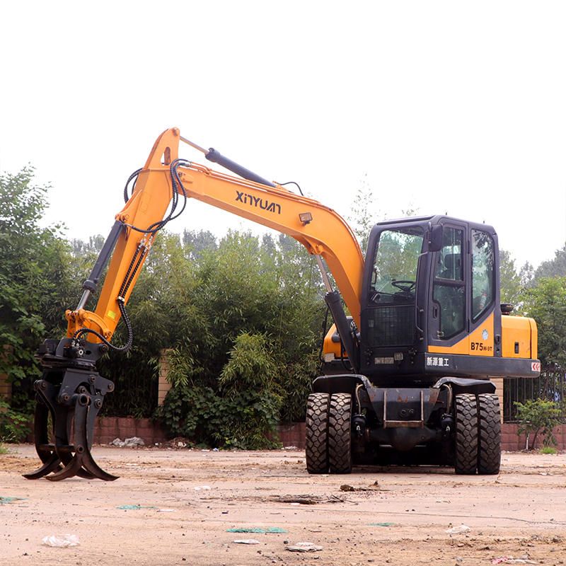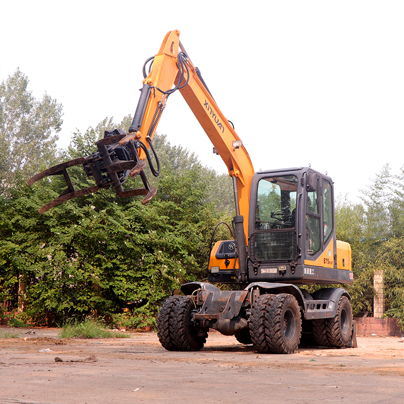 要根据施工场地的情况设计好施工方案,不要做多余的动作,装车要尽量在前面取土,尽量避免旋转到后面去取土,抓木机所处的高度要合适,不要把土重复挖来挖去。
