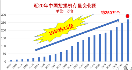 挖掘机的存量已经是超过250万台(包括历年内进口的二手机),约是十年前的2.5倍。如此巨大的存量创造了数千亿的后市场需求规模,挖掘机后市场盛世的到来。