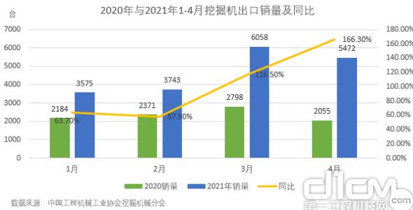受2021年前三个月的超高销量数据和同比涨幅影响,不少人对于挖掘机市场销量的期待值也被调动至高点。而今仅2.5%的涨幅相比上年同期虽回落明显,但也有业内人士表示这并不意味着行业景气周期的拐点已经到来。鉴于多年来中国工程机械行业的发展并不与世界工程机械发展规律的一般性完全吻合,总能以“一枝独秀”的姿态展示其特殊性,故业内人士普遍认为2021年挖掘机市场仍有高速增长的潜力。