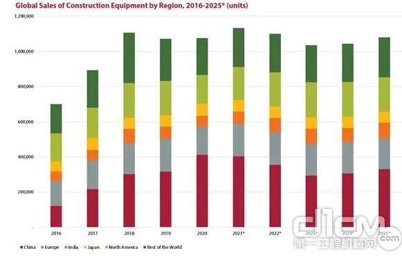 2020年中国工程机械销量增长约30%,增长一直持续到2021年第一季度,但预计2021年全年销量约有2%的下滑。从历史角度来看,中国市场的销量仍将保持在非常高的水平。