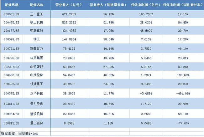 和表现同样出色。山河智能营业收入同比增长率为57.23%;山推股份归母净利润同比增长率为138.6%。