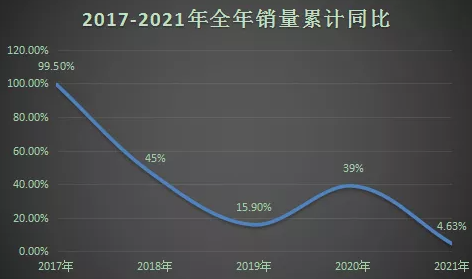 从近5年的整体销量表现看,2017年销量同比增幅翻番,为历史高位,此后同比增幅均保持正向增长,至2021年销量整体增幅放缓至个位数增长。