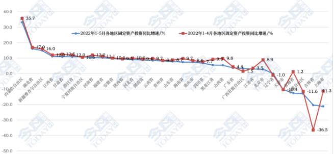 图/ 2022年1-5月各地区固定资产投资同比增速情况