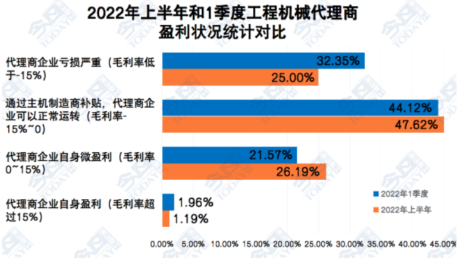 2022年上半年和一季度中国工程机械代理商盈利状况分布对比