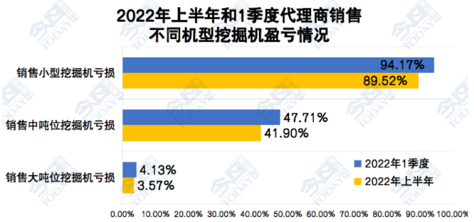 2022年上半年和一季度中国工程机械代理商销售不同机型挖掘机亏损情况对比