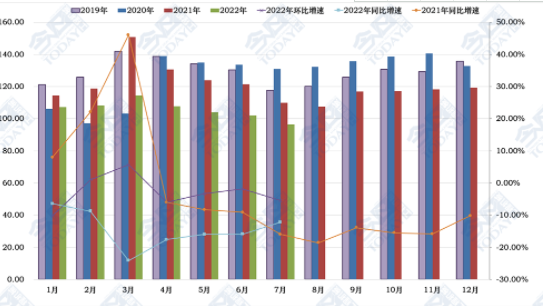将2022年6月挖掘机销售数据和其他关联指标数据纳入到中国工程机械市场监控及预测数据模型中,我们预测2022年7月,国内挖掘机市场销量为9680台,同比降低21.49%。预测数据将根据上下游经济、投资和销售数据,以及一线市场的即时反馈,进行月度更新。