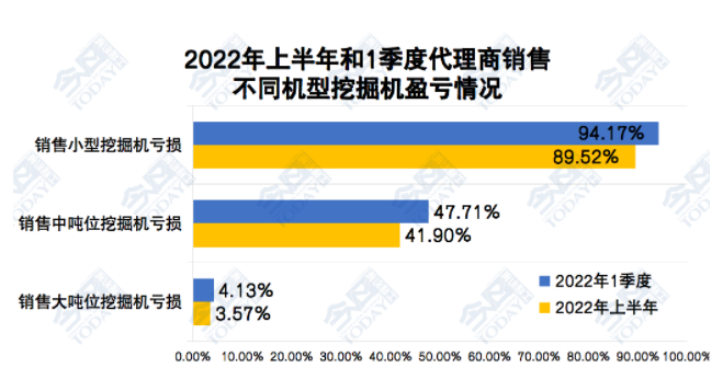 2022年上半年和一季度中国工程机械代理商销售不同机型挖掘机亏损情况对比