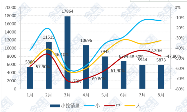 2022年1-8月小型挖掘机销售情况