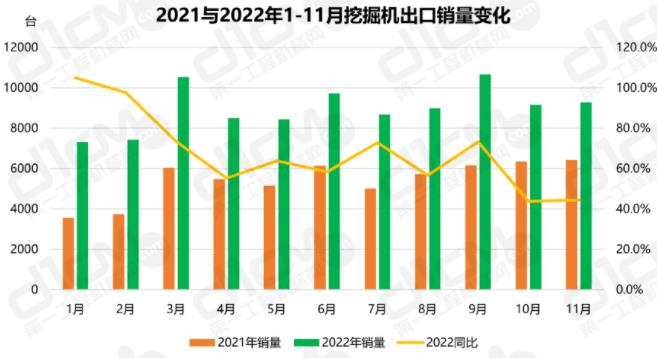 据海关总署发布的最新数据显示,11月,中国出口2960.9亿美元,同比下降8.70%,出口增速大幅下降,低于市场预期。这主要是因为11月份全球经济下行压力增加,发达经济体货币政策持续收紧,海外需求整体走弱,对中国出口产生不利影响,而这也在一定程度上影响了挖掘机出口销量走势。但值得一提的是,尽管我国挖掘机外贸面临复杂的国际环境,但稳中提质的发展趋势没有改变。