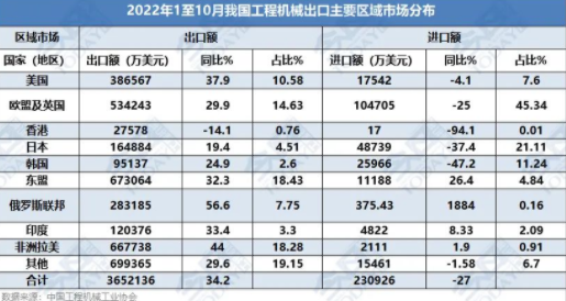 2022年1-10月份工程机械我国产品进出口主要特点: