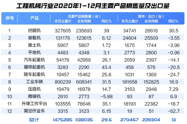 随着2020年最后一个月挖掘机销量公布,在我国科学统筹疫情防控和经济社会稳步发展之下,挖掘机械市场迅速复苏实现连续超预期增长,327605台的全年销量及39.0%的同比增长再一次创造了历史新纪录。